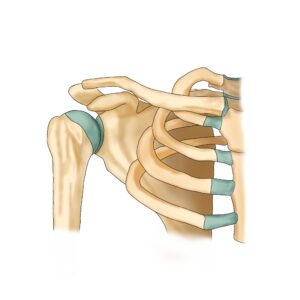 肩甲骨は、胸椎、肋骨、胸骨で構成される胸郭の上をなめらかに動くのが正常です。しかし、五十肩になると、肩甲骨が胸郭に張り付いて動けなくなってしまいます。