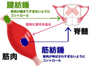 筋肉に備わる筋紡錘を刺激すると、筋肉は緊張してしまう